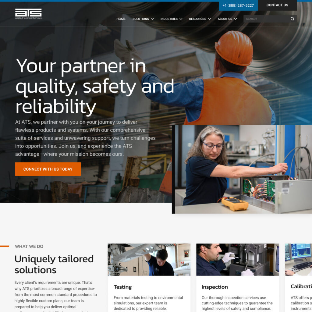 ATS's 4,000+ page website was too complex for their team to manage and too confusing for visitors to navigate. We restructured their content and built branded drag-and-drop blocks that simplified updates. Now ATS launches campaigns easily while maintaining SEO best practices.